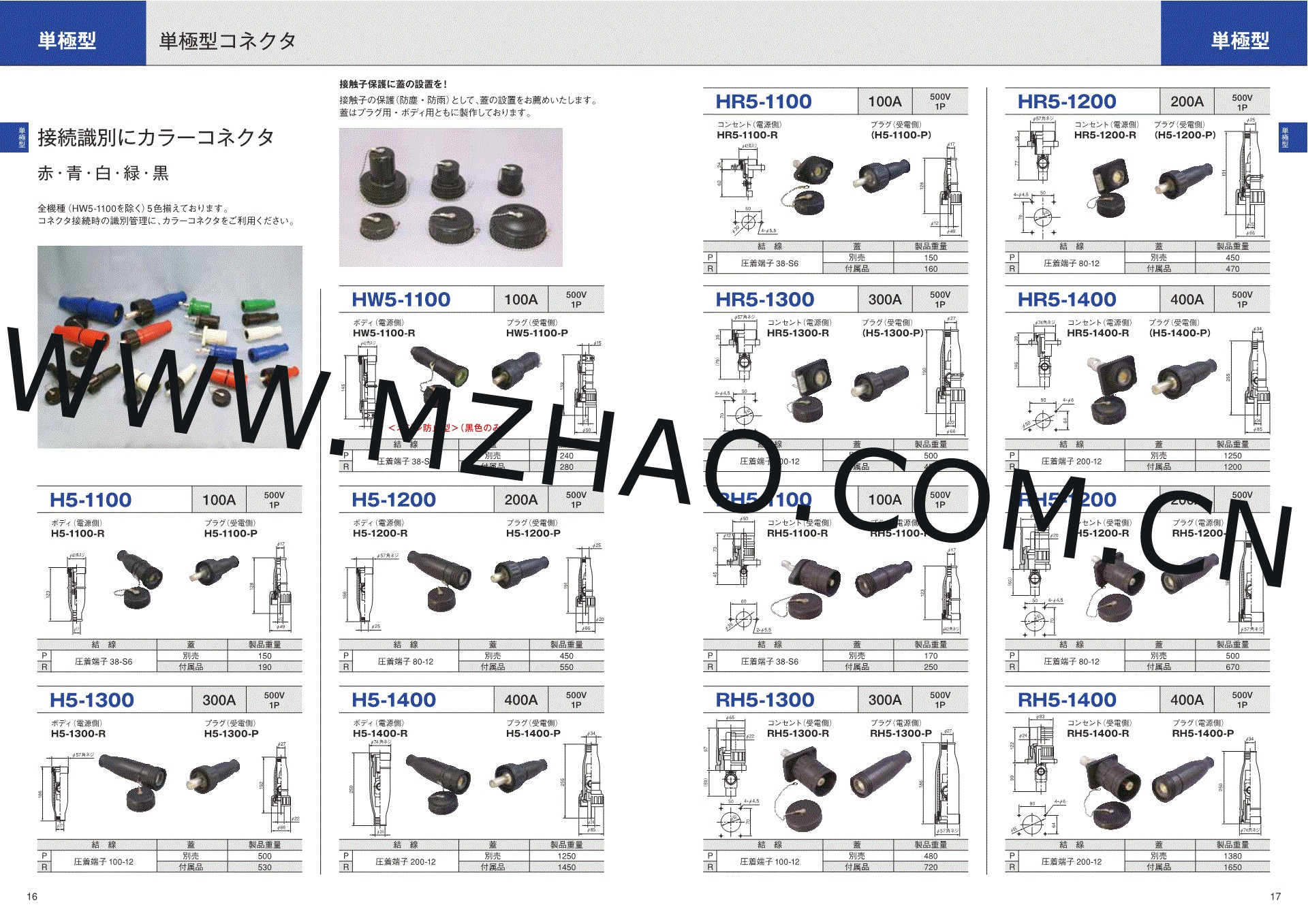 176月 Male and Female power plug ( H5-1200) MADE IN JAPAN TAIHE :Power Plug 1 Pole 500 Volt 200Amp Code: H5-1200, 1.Male and Female Red Color 2.Male and Female Black Color 3.Male and Female White Color .Male and Female BLUEColor